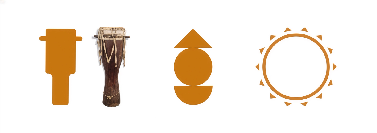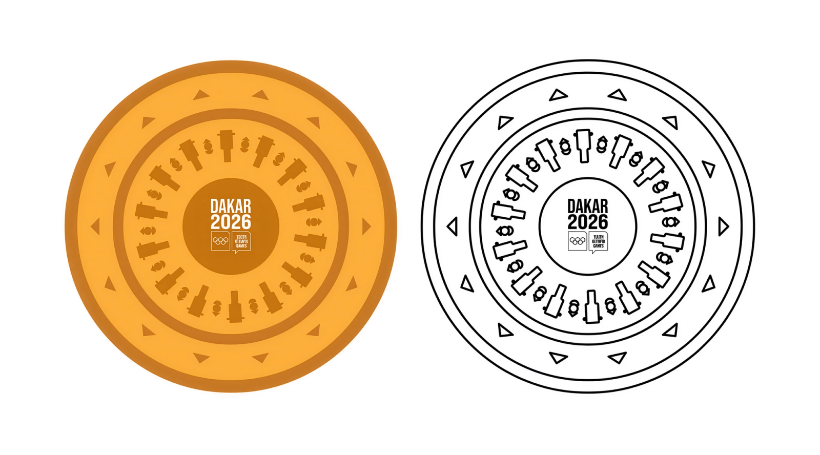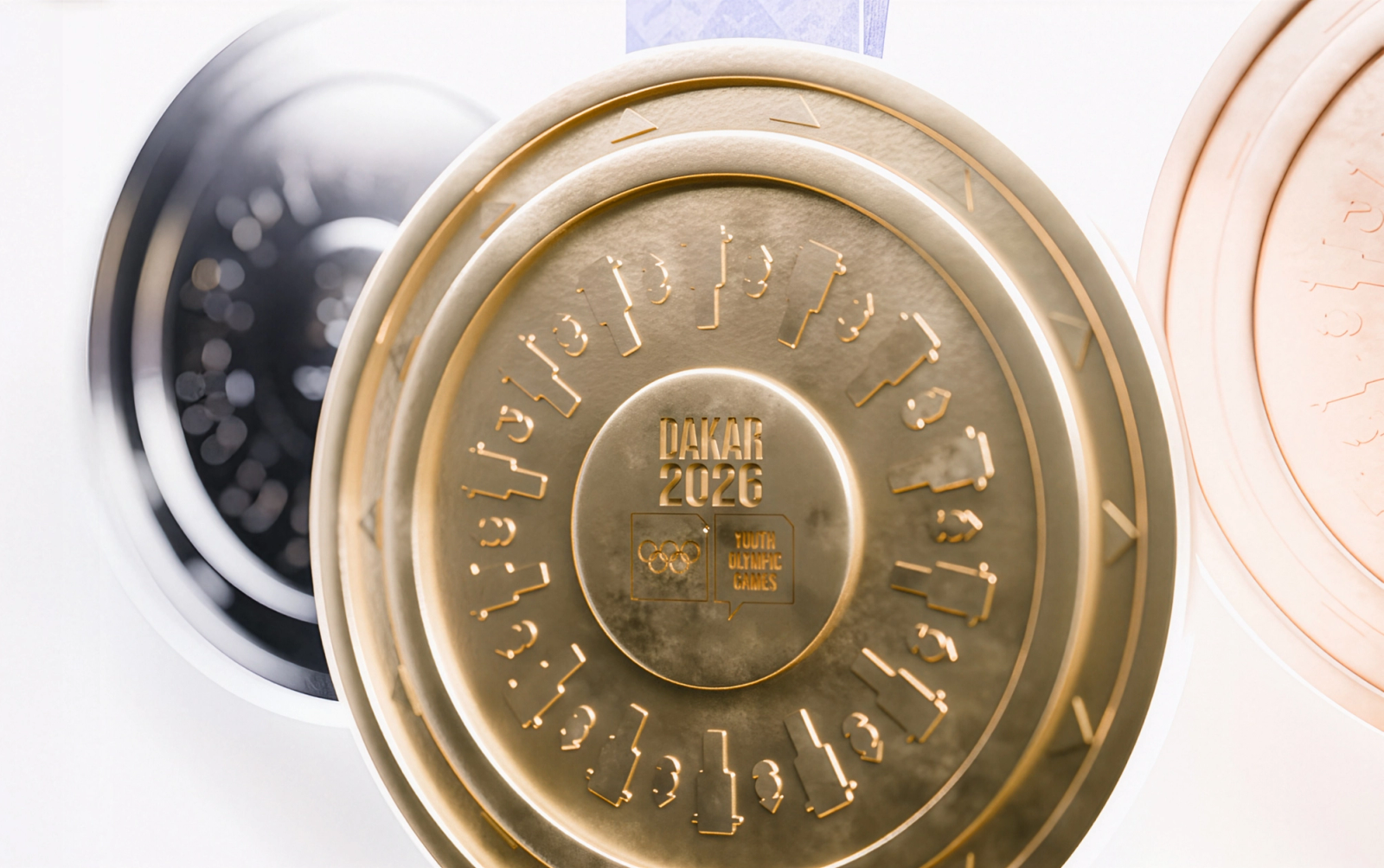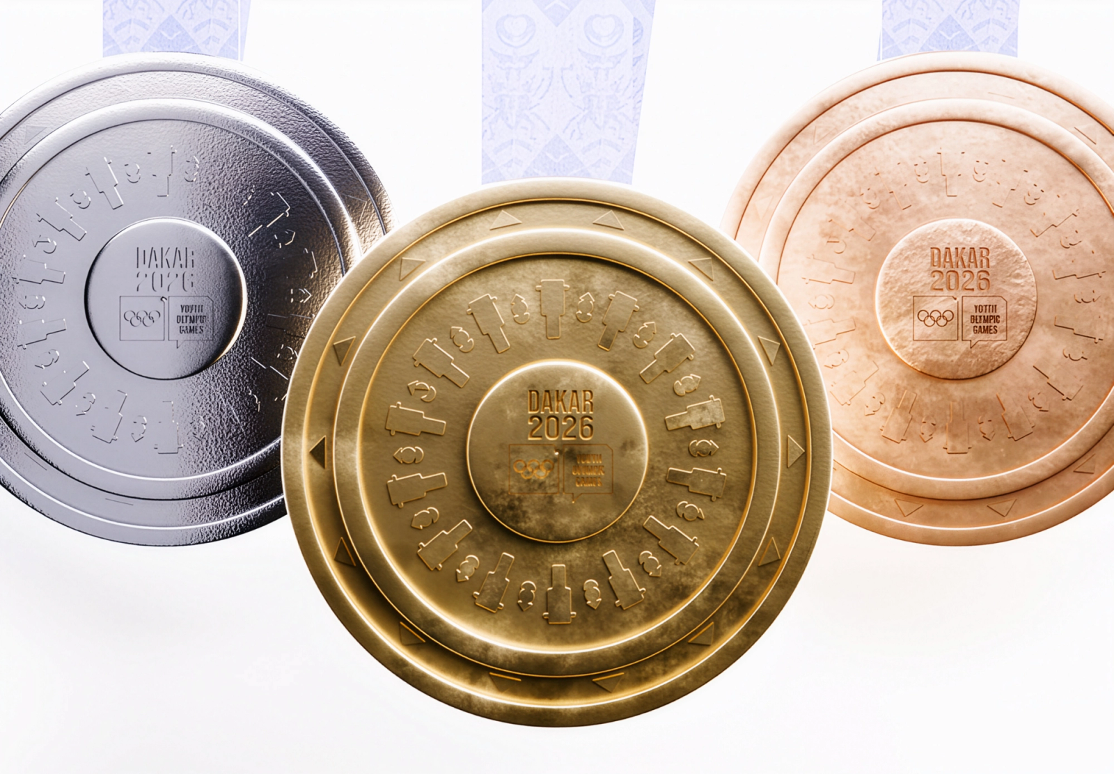 The Sabar for rhythm. The sun for radiance. The triangle for the rise of African youth. The circle for unity. The half-circle — the calabash — for Téranga, the Senegalese ethic of welcoming and sharing. Five signs, arranged so that the medal can be read in any orientation, by any athlete.